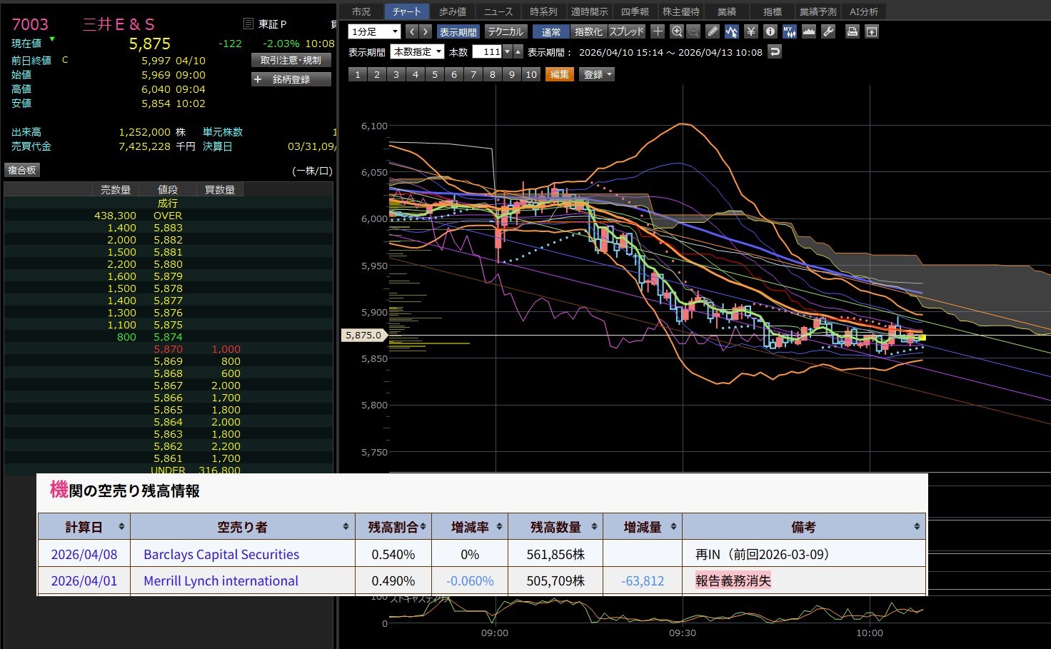 もうクロージングか・・・引けにかけて上げてきたね。三井ESは流石にバークレイズが怖くて入れなかったわ。アイツラいやらしいから引けドンになると思うで!