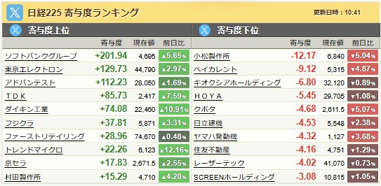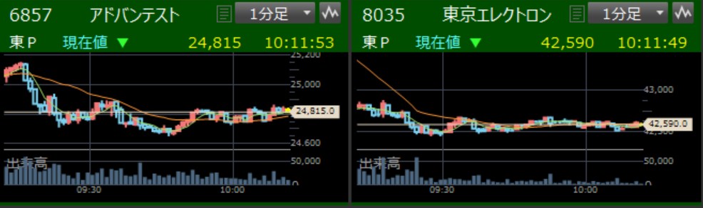 日経のほうがTOPIXよりも下げてますねってことは・・・半導体が弱いってことやね。