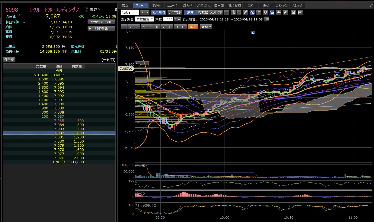ワイ・・・実はリクルートの自社株買いが10:00と14:00からされているのではって思ったりしてました。なので10:10と少し遅れましたが、リクルートを勝ったんや・・・結果は・・・なんか買っていきなり含み損になると追加購入ができなくなる。