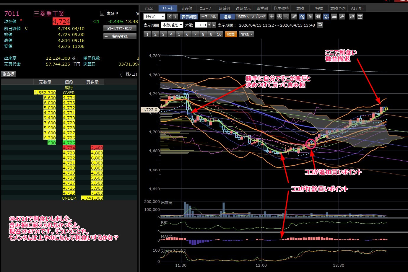 明日は実家に帰るから相場に参加できないのですよね。って重工・・・ワイがリグったら一瞬で@4750やんけ・・・なんやそれ!?