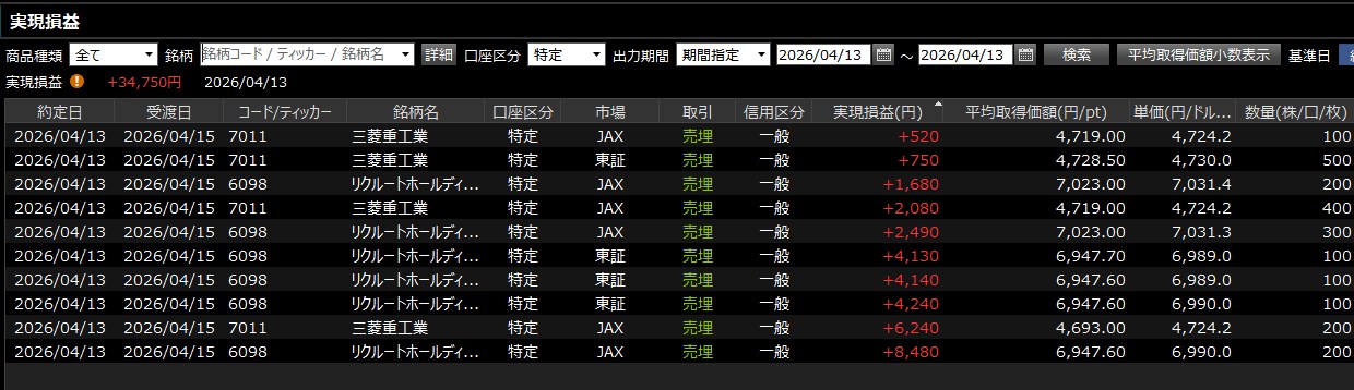 リクルート強い・・・りくりゅう引退で暴落とか言ってたワイ 恥ずかしすぎる。(。>﹏<。) 前場乙でした。後場は見てるだけかな。持ち越す予定やねん。乙でした。何となく下手すりゃ戦争終わるかもやしね・・・