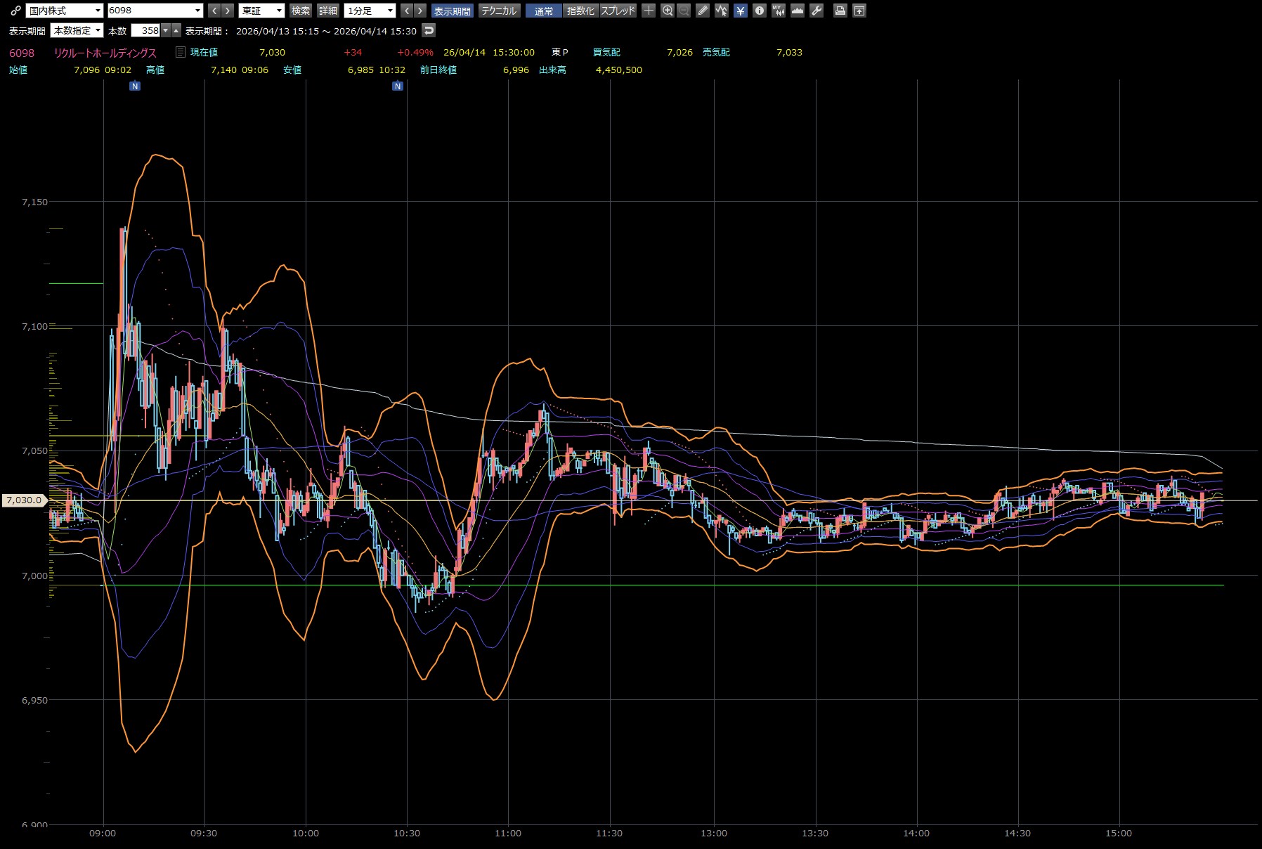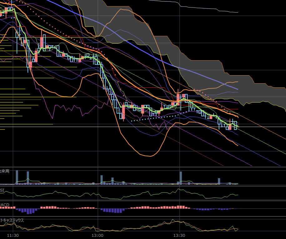 あぁあああ今日はトヨタあかんわ。昨日のINPEXみたいな動きしてる。思いっきり下降トレンドやわ。