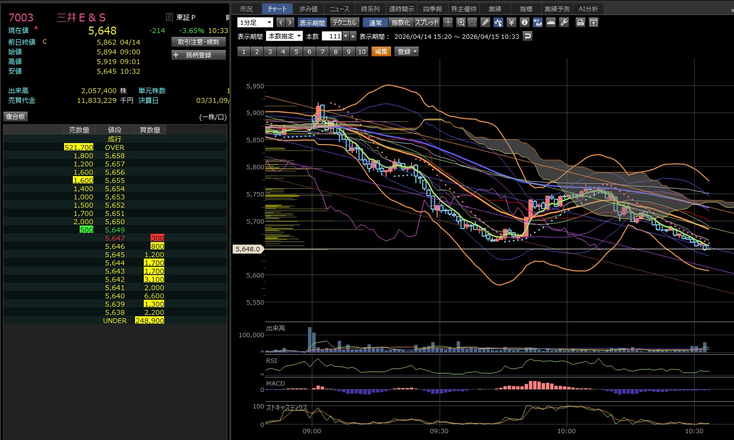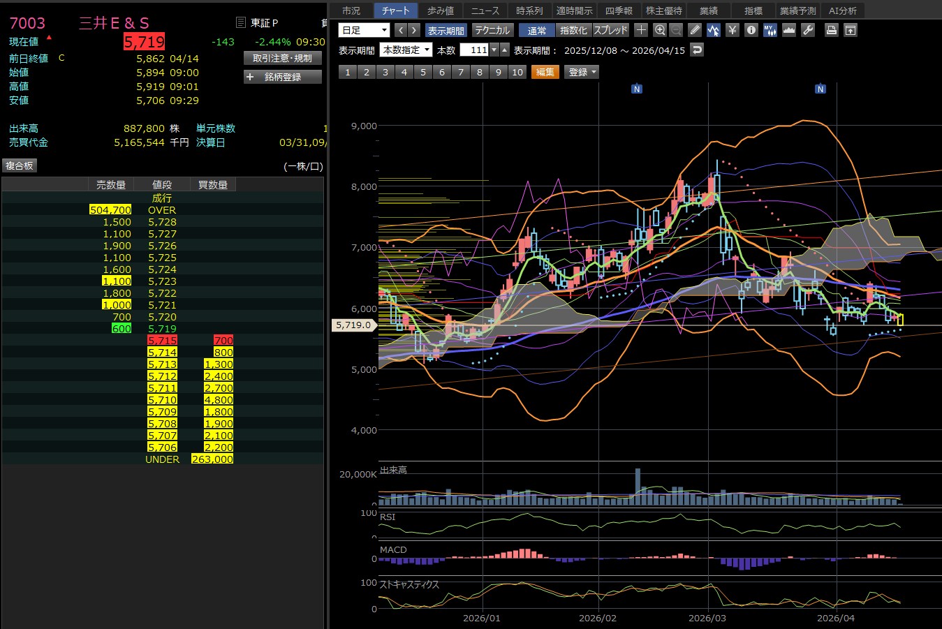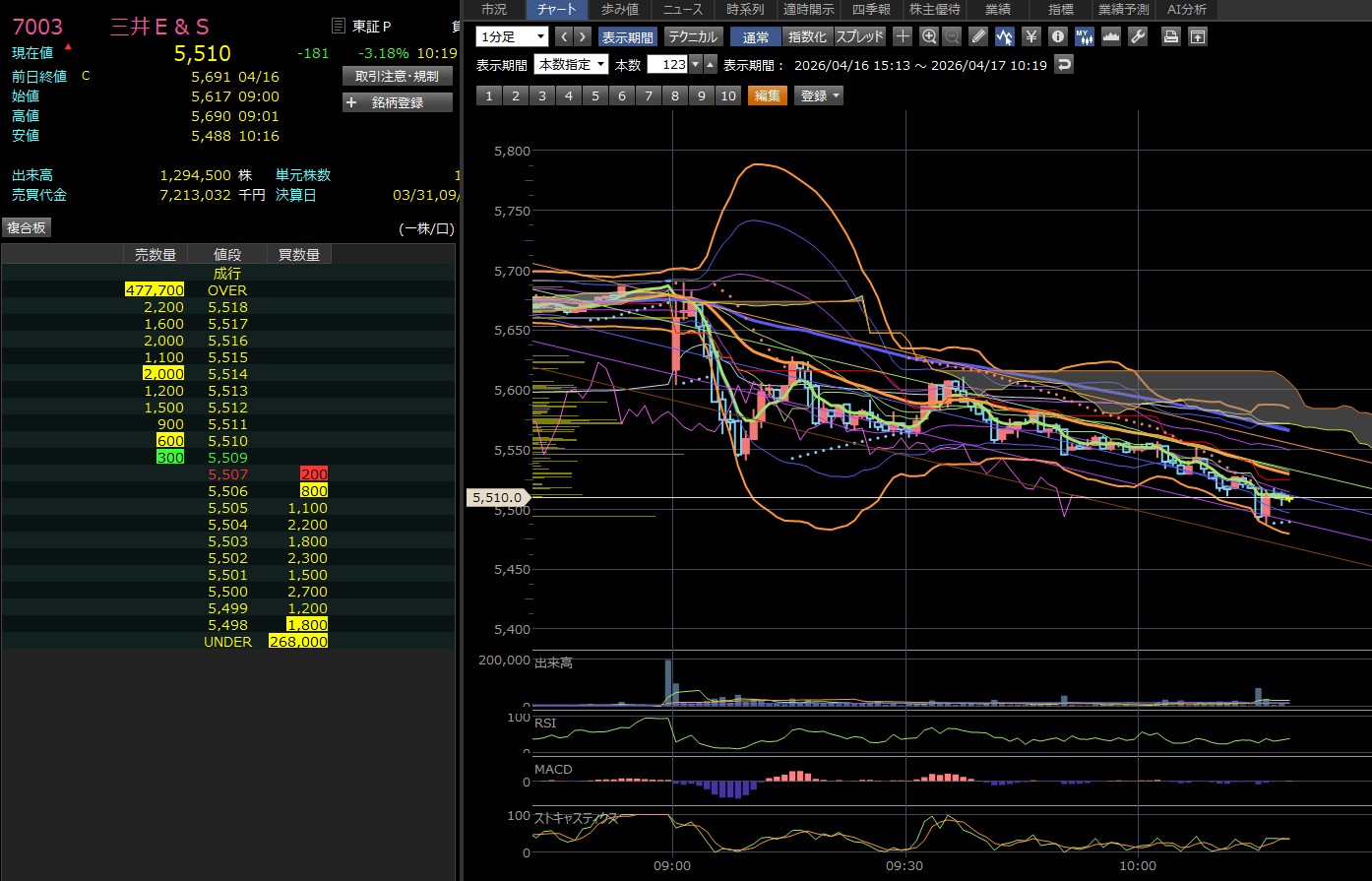 三井ESは完全に上を向いたわ・・・現在5700を超えとる・・・おかしいって・・・悔しすぎる。ワイの買った銘柄はぜんぜん上げへんし・・・含み損抱えたまま、終わりそうや。
