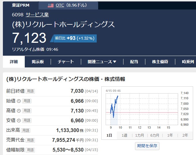 リクルートいっとけばよかったよ。日経に連動せず独立して動くときがあるからね。特に自社株買いを発表してるからお得やったのに・・・もったいないことしたわ。