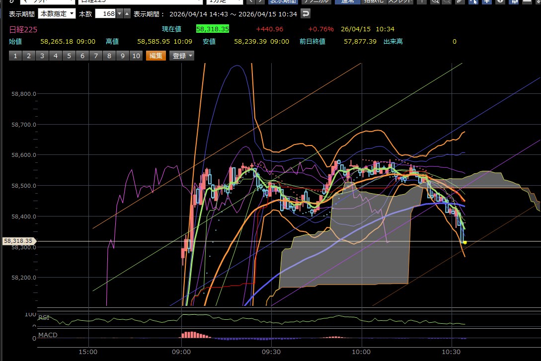 後場が始まりました。はっきり言って、先週のホルムズ逆封鎖は最良の一手でしたね。ぶっちゃけ流石トランプって思ったりもしたんけれど、イランが自爆覚悟でやってくるかなって思ったら流石にそこまではしなかったね。だからノーポジにしたけれど激しく後悔や。まぁ仕方がない。今日は持ち越しても良さそうな気がするから引けに買うのか思案中。