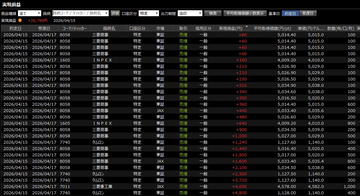 ワイの取引は以下の通り・・・