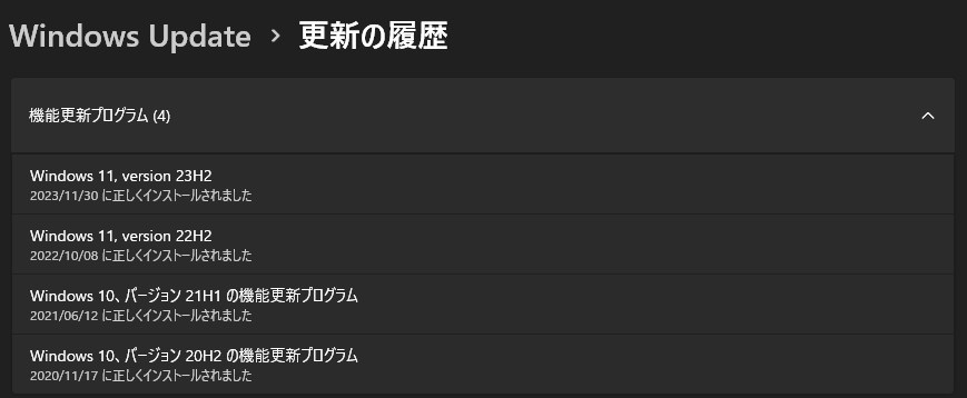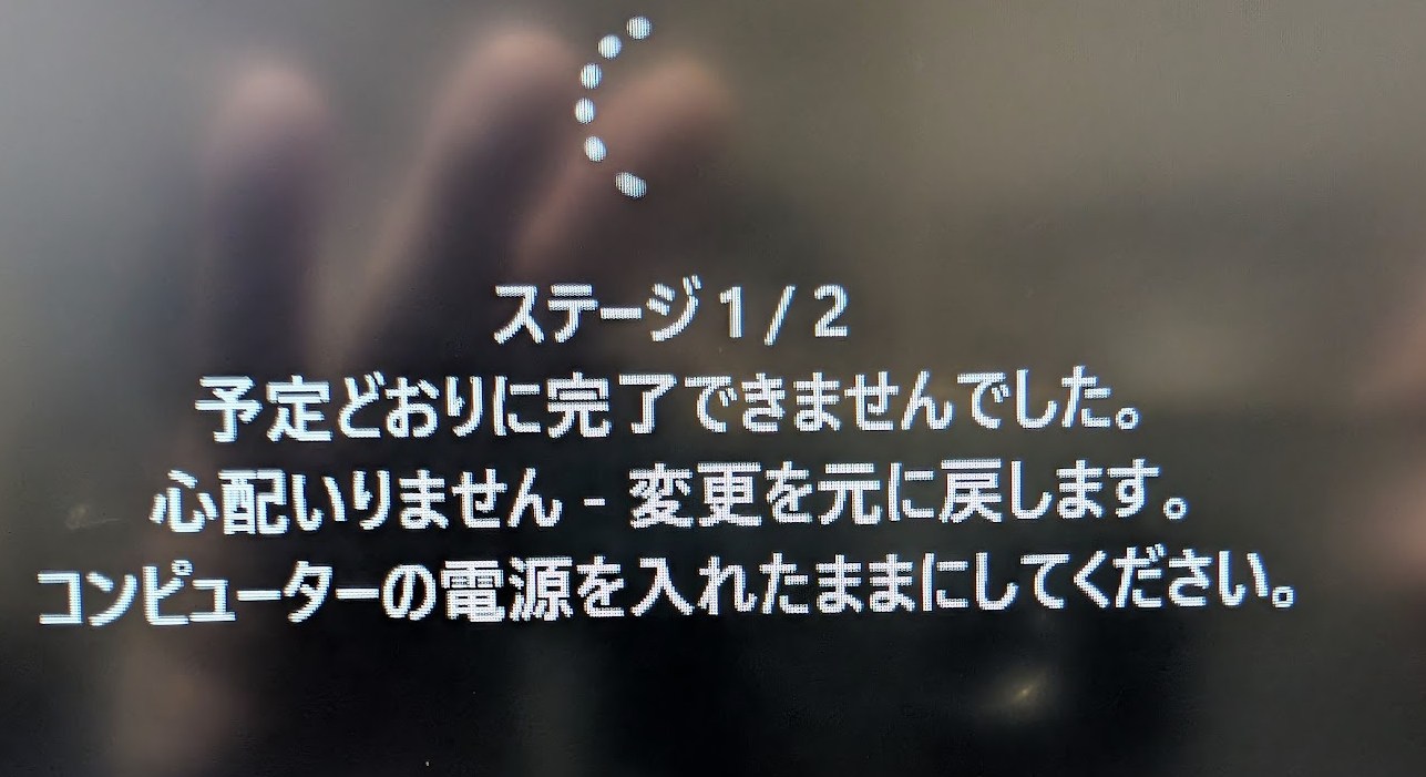 何回この画面を見たことか・・・久しぶりに色々調べました。このあと、すぐにバックアップをとって、これで安心です。24H2を飛ばしてたなんてね。